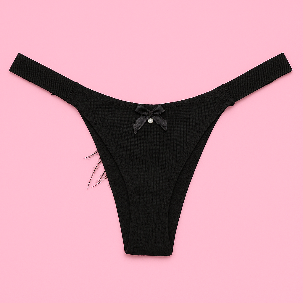 Slip nero con texture a costine e linea netta sul corpo.